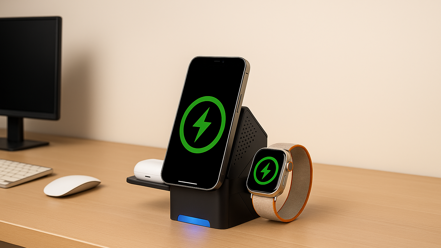 ARC Station 3-in-1 – Magnetic Wireless Charger with Rotating Base (15W)