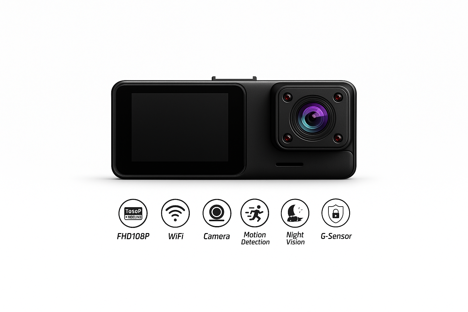 3-Channel 1080P Dash Cam with WiFi, Night Vision & 32GB Card